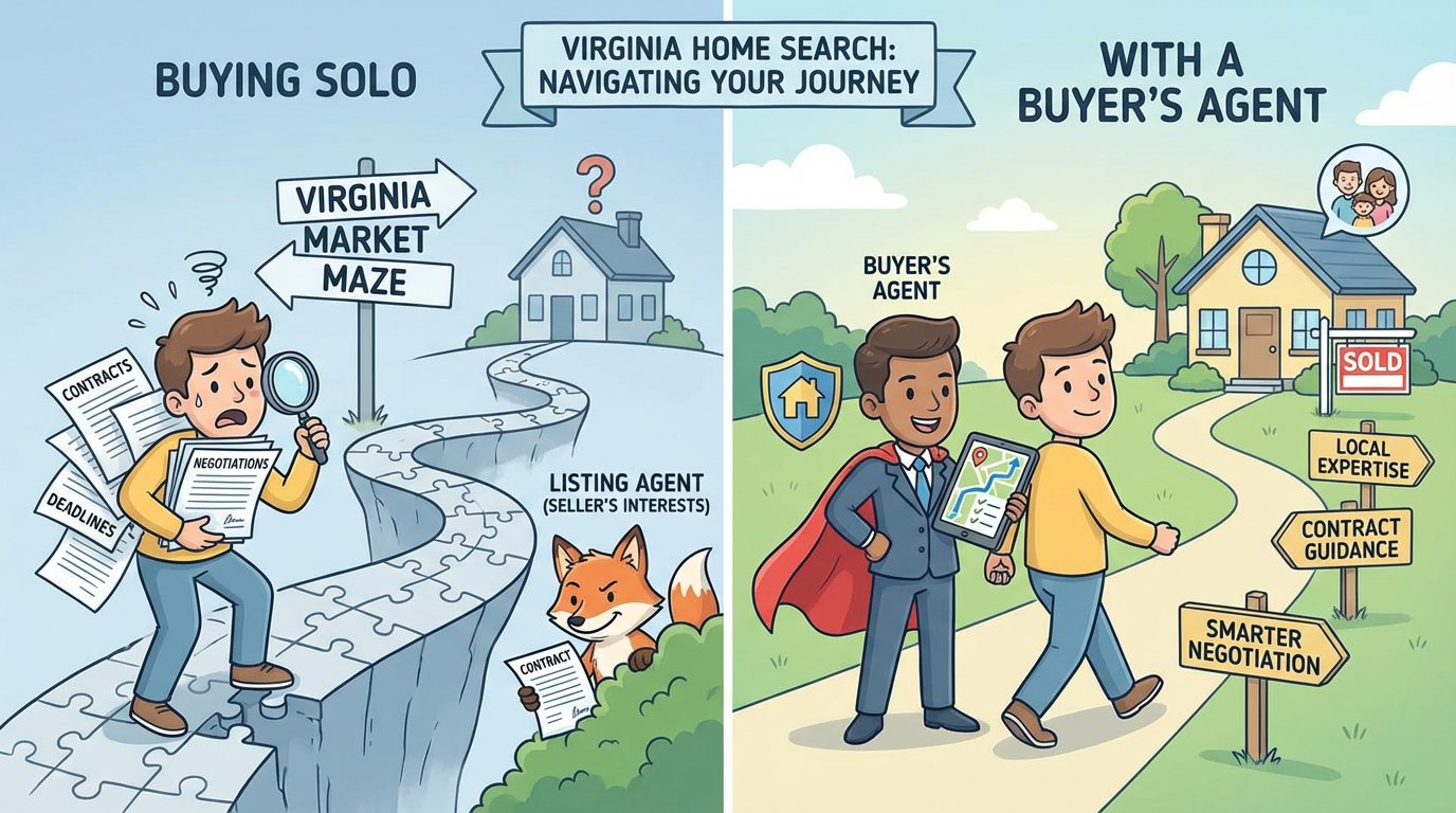 A good local REALTORĀ® brings market-specific experience that general online research can’t fully replace. In Virginia, a qualified buyer’s agent works for you, period.